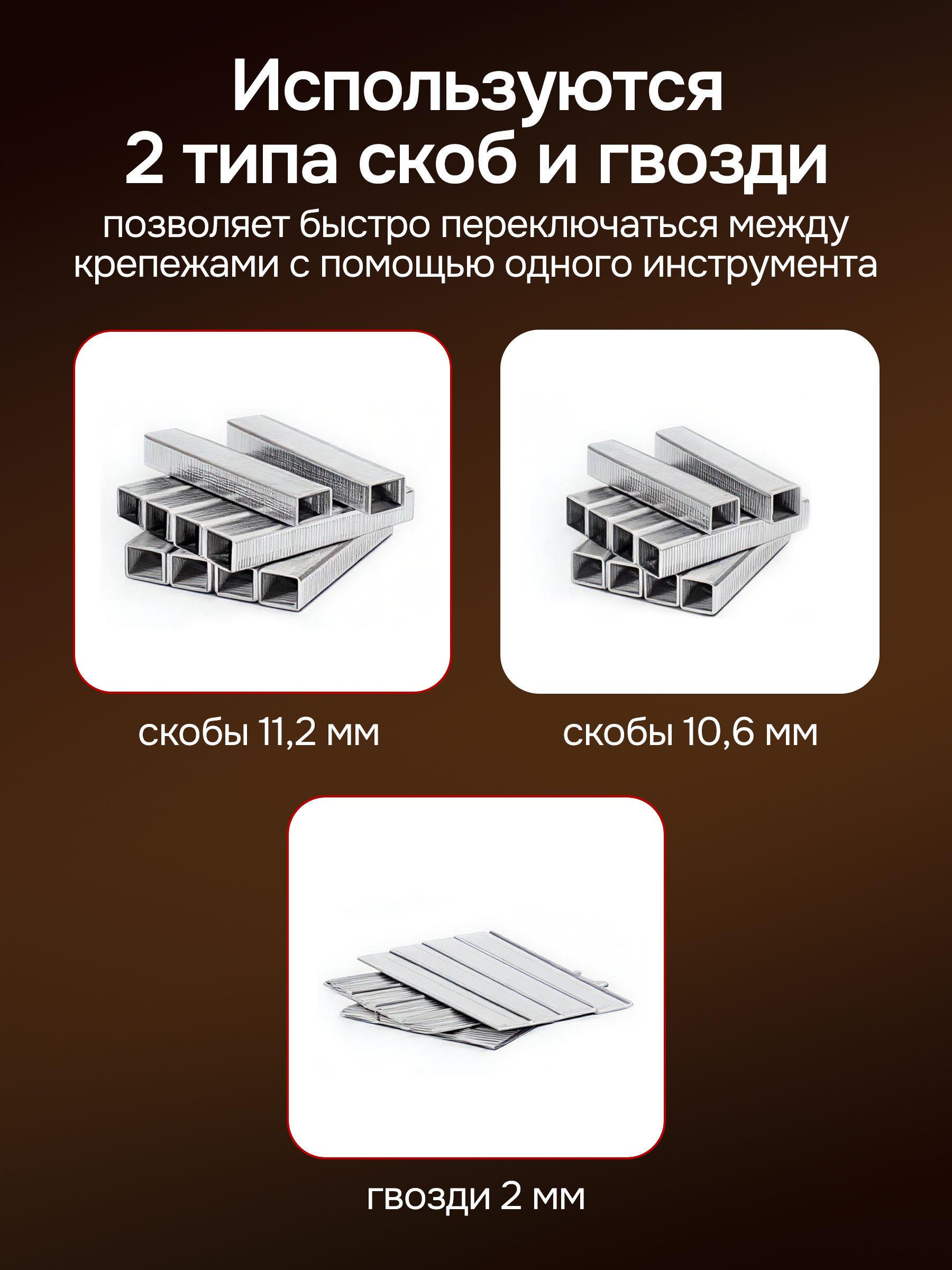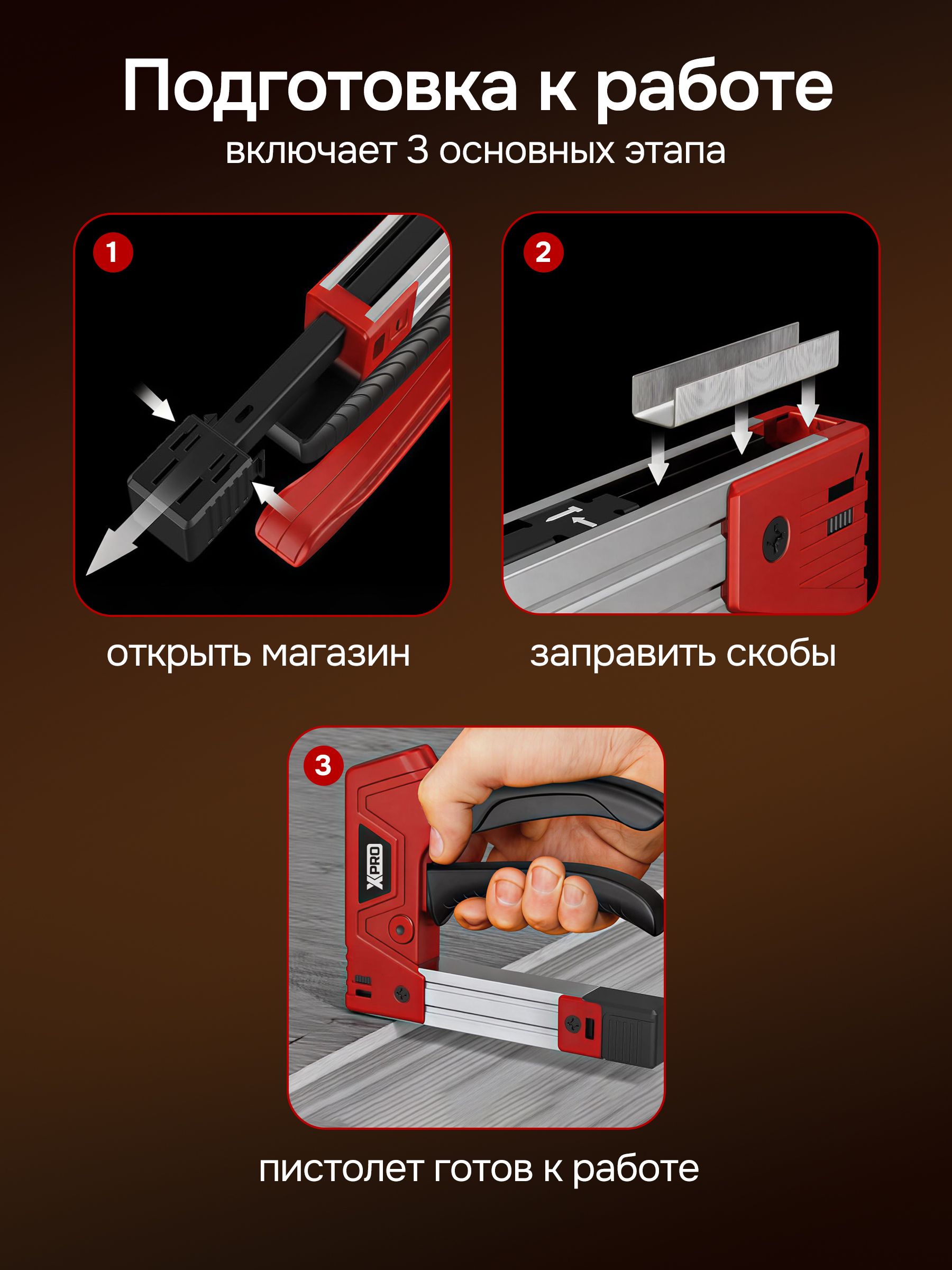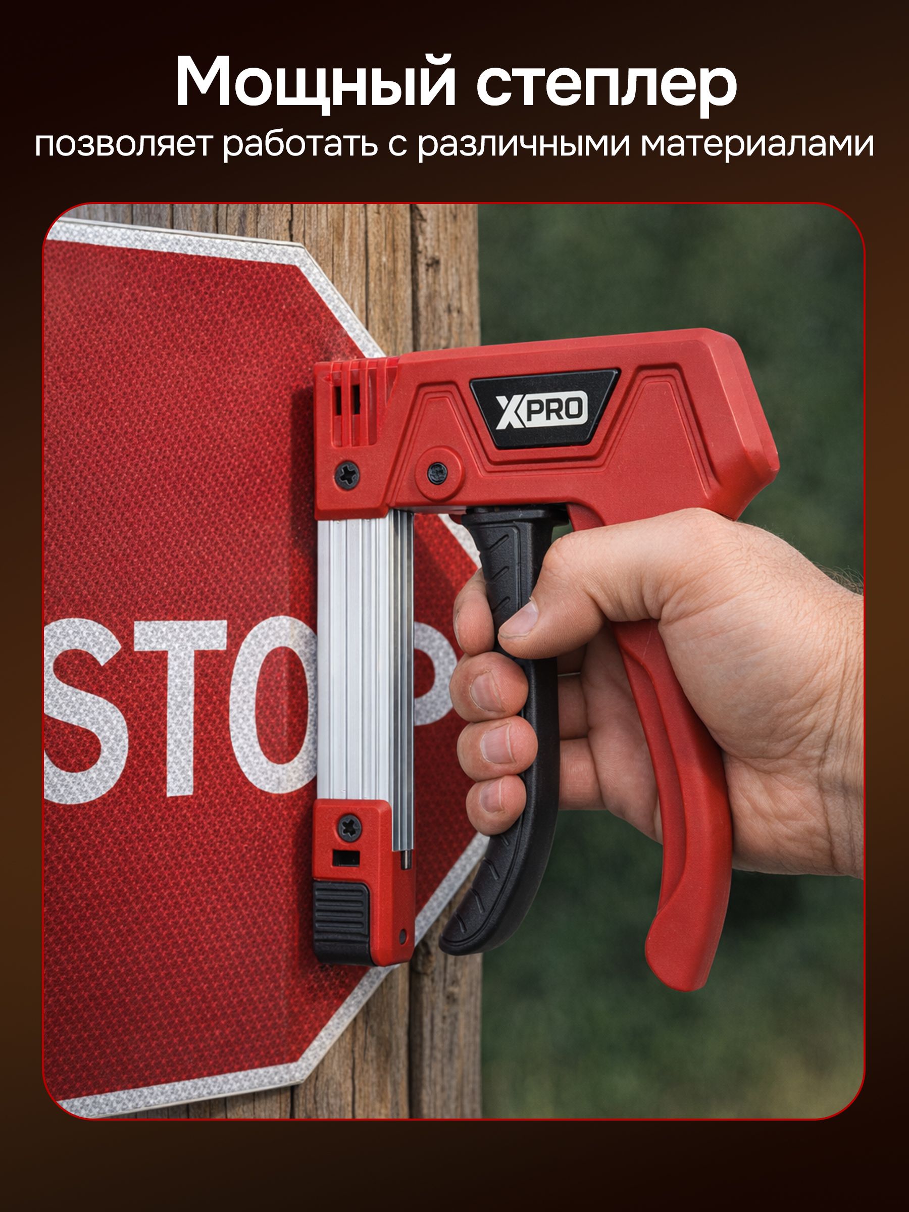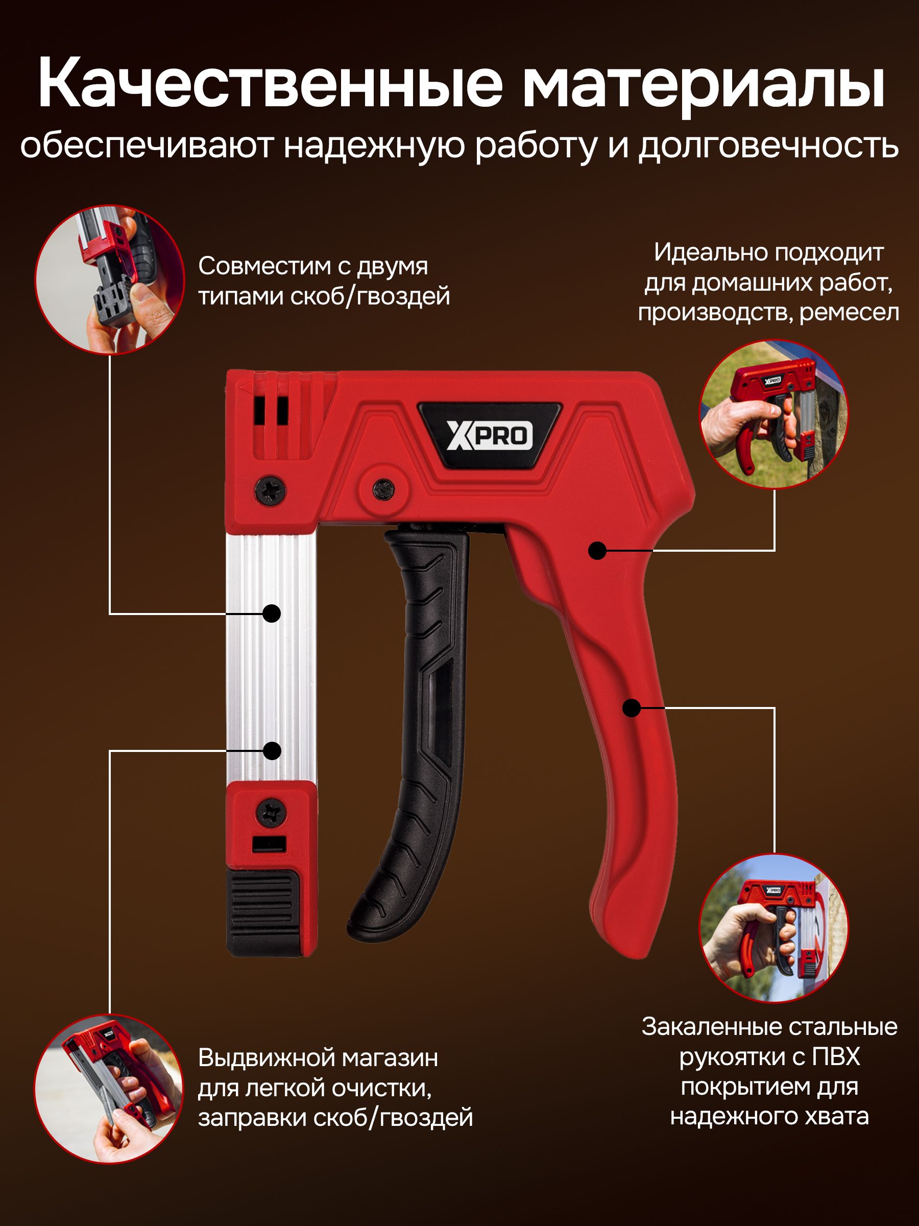 Пистолет для скоб и гвоздей ручной усиленный, 3 в 1 для скоб (шир. 11,2 мм и 10,6 мм, толщ.1.2мм) и гвоздей (шир. 2 мм, толщ.1,2мм) XPRO XR-74102